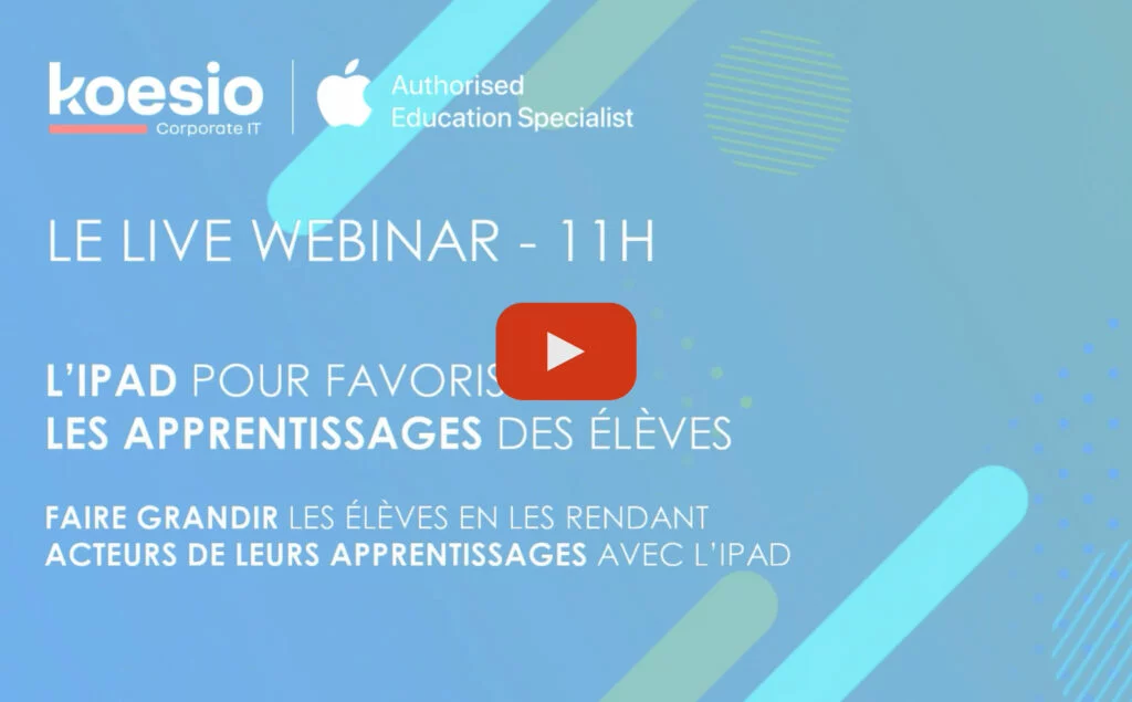Heliaq (Koesio Corporate IT) et Apple vous invitent à découvrir comment l’iPad permet d’accompagner les élèves dans leurs apprentissages de façon sécurisée et efficace.